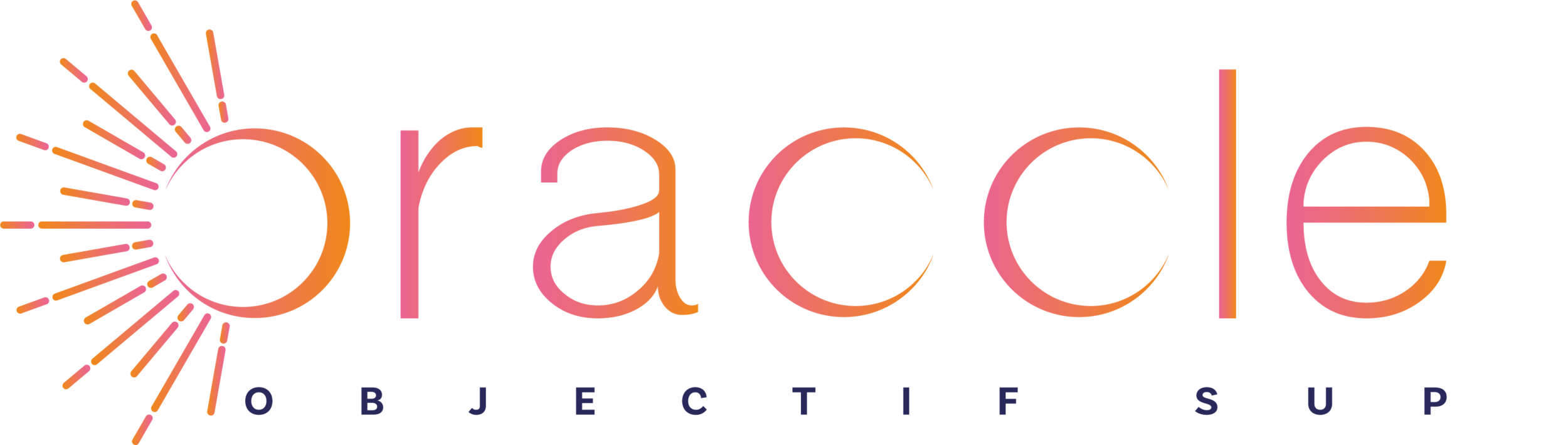 Inspiré par le côté céleste du nom, le logo d’ORACCLE démontre le rayonnement du projet permettant ainsi, à tous les publics cibles d’avoir un seul objectif, celui du SUP. Projet fédérateur, le « O » d’ORACCLE souligne un cercle vertueux entre les différents acteurs mais marque tout de même un cycle en mouvement perpétuel par la présence de deux demi-cercles repris par les « C » du nom.