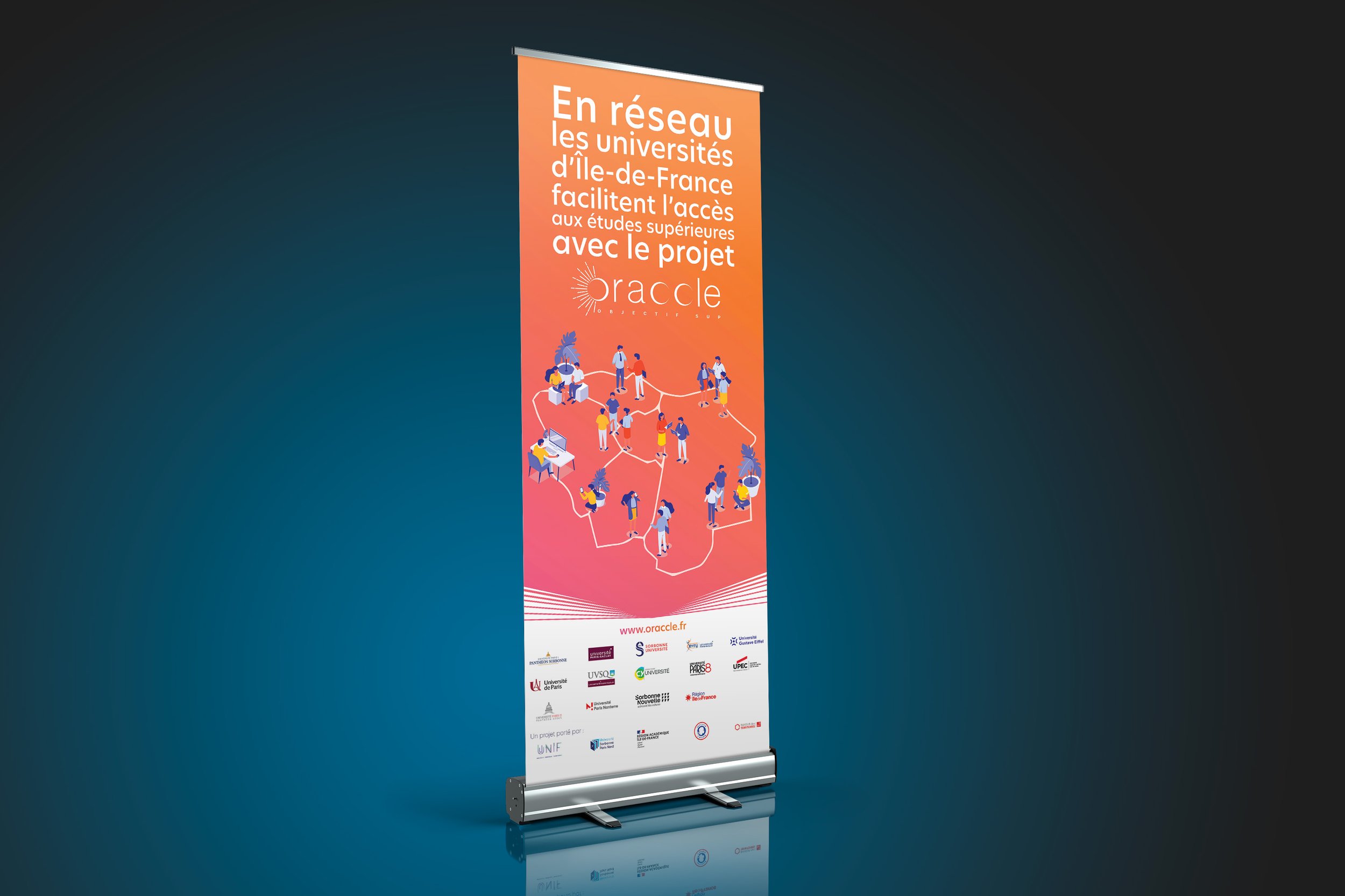 Création de l’identité visuelle a l’occasion du déploiement du projet ORACCLE, financé par l’Etat et porté par les Universités de Paris et la région île-de-France .